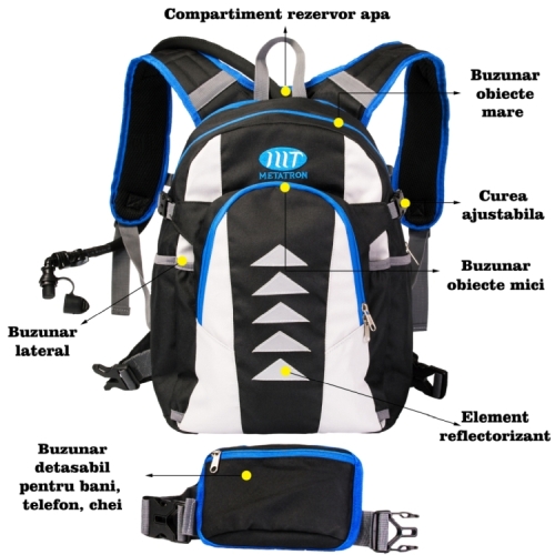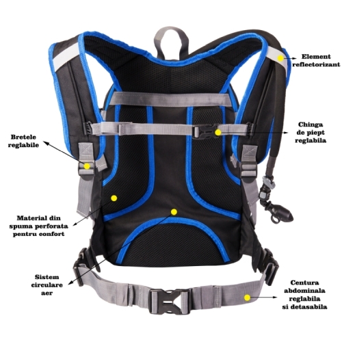 ★ Elemente reflectorizante: rucsacul este dotat cu elemente reflectorizante pe partea din față și pe bretele, pentru a vă asigura vizibilitatea pe timpul nopții.