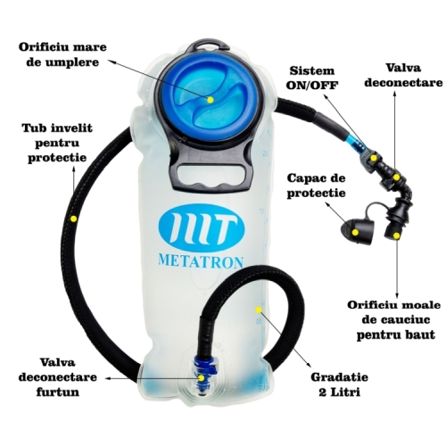 ★ Orificiu de ieșire pentru furtunul de apă: Un capăt al furtunului de apă se conectează la rezervor, iar celălalt capăt se scoate din rucsac prin orificiul de ieșire de lângă suportul de agățat rezervorul.