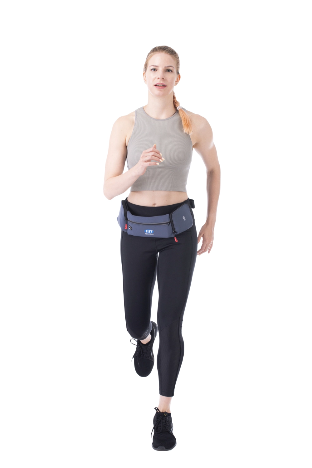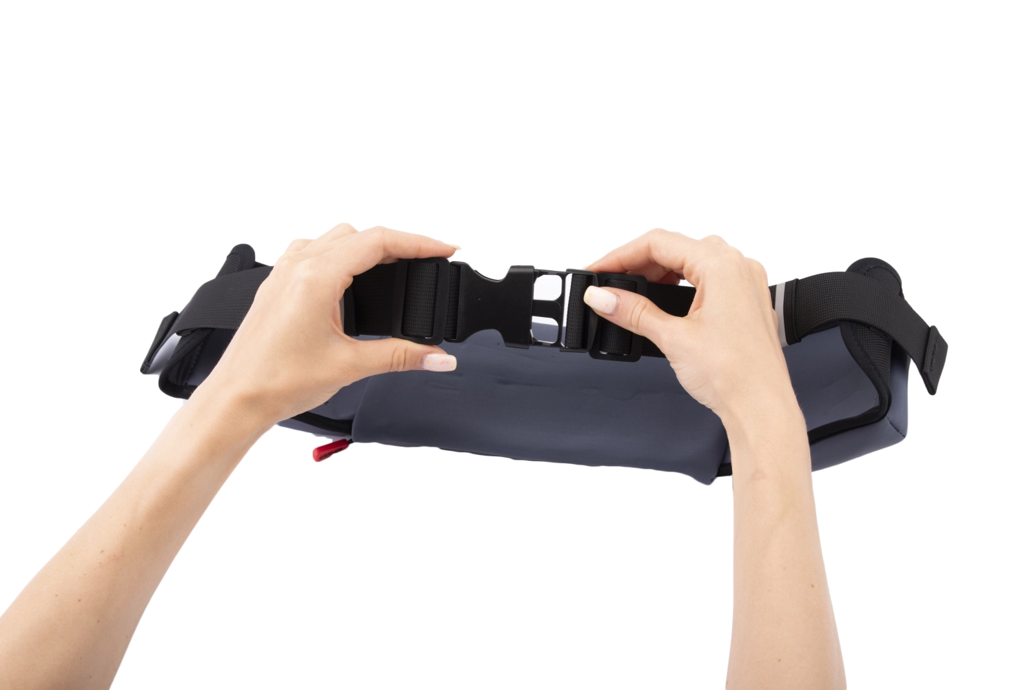 Centura sport poate susține până la 750 ml de apă, dar îți recomandăm să alergi cu maxim 500 ml de apă în recipient, pentru a avea o experiență cât mai confortabilă. Pentru activități sportive care implică deplasarea doar prin mers, fără alergare, poți transporta până la 750 ml de apă.